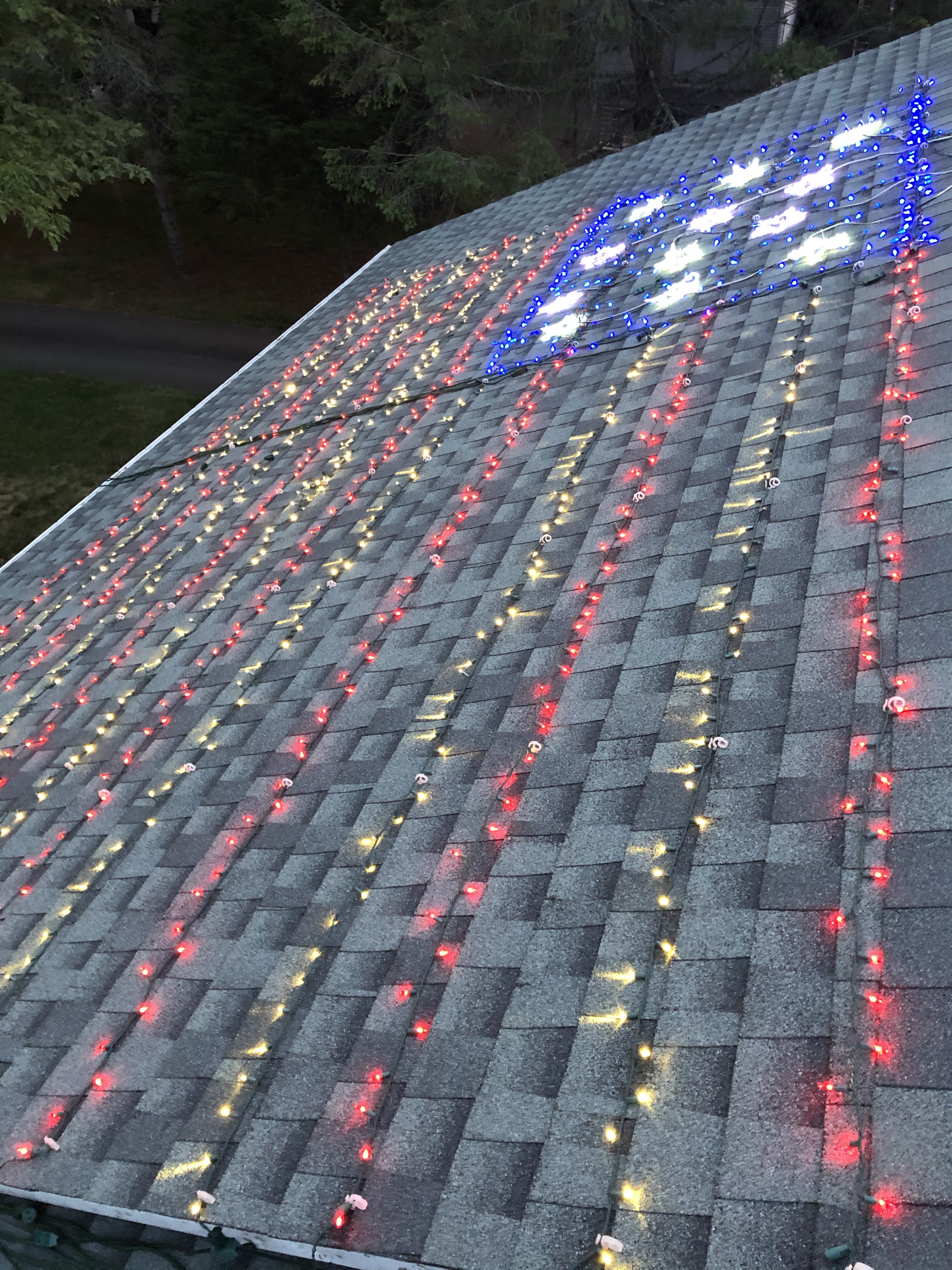 The show featured a 40 foot wide 12 foot tall American flag up on the roof top with more than 1,500 lights.