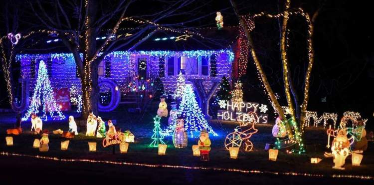 In addition to thousands of lights, Petrowski’s display includes songs from Jackson Five’s Upon on the Rooftop and Barbara Streisand’s Jingle Bells synchronized with flashing lights and transmitted via an FM transmitter to radios in cars cruising past the display.