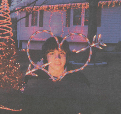 Joe Petrowski, 16, gets into the Valentine’s Day spirit by decorating his house, at 163 Valley Shores Drive in Guilford, with lights. The lights shows are synchronized with love songs. Petrowski is accepting donations from visitors, which he’ll donate to the Guilford Food Bank.